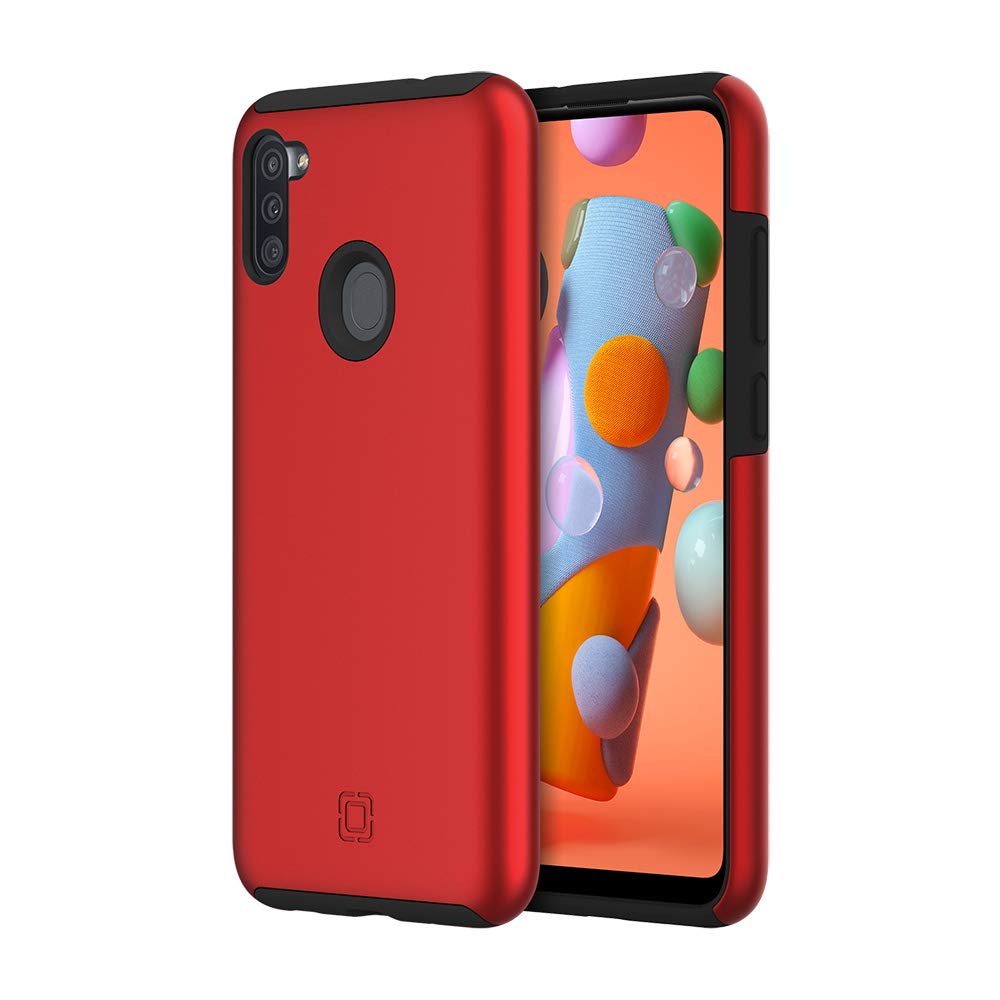 The Incipio Dualpro for Samsung Galaxy A11 in iridescent red/black pairs eye-catching style with rugged everyday protection, perfect for users who want a slim profile without compromising defense against drops and scratches.