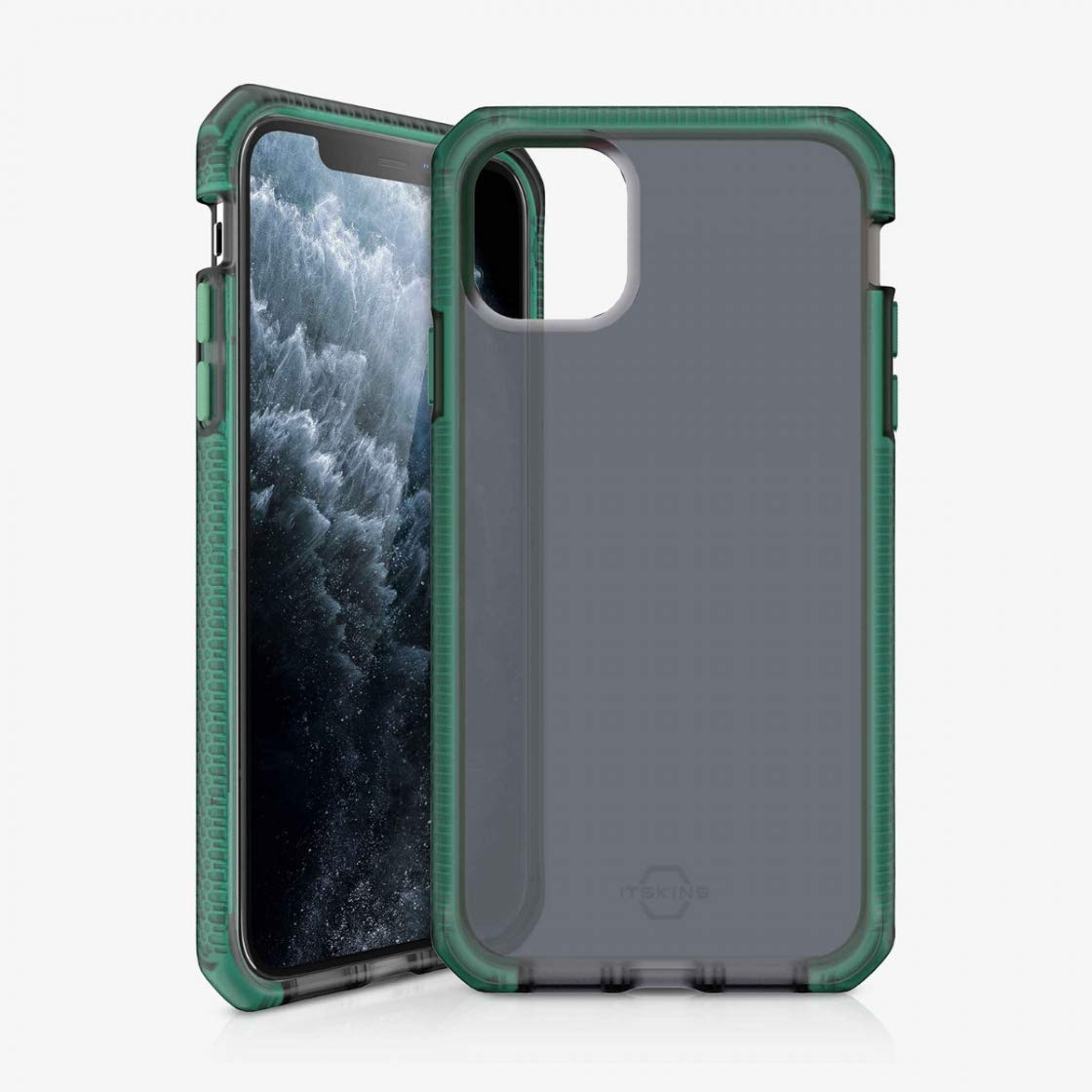 Protect your iPhone 11 Pro Max with the Itskins Supreme Frost case — a sleek Tiffany Green and Black hybrid that blends minimalist style with rugged protection for everyday use.